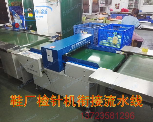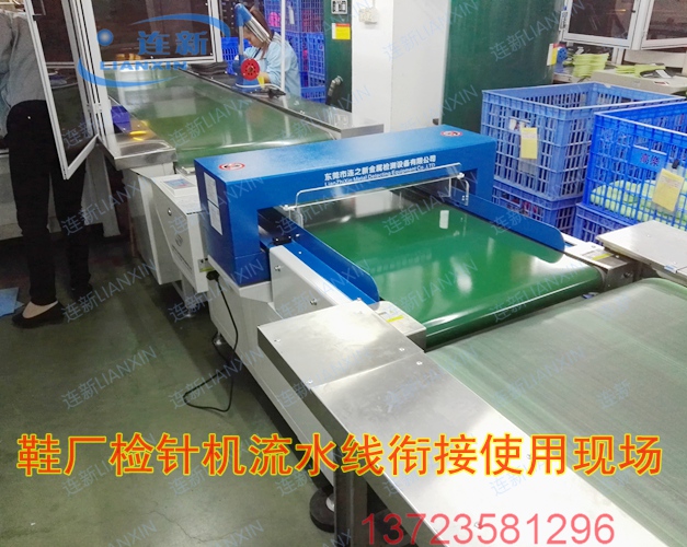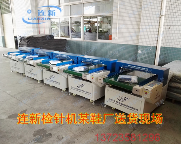 东莞茶山某鞋材厂主要生产聚氨酯类鞋底鞋垫,多年前就大量使用连之新平台式检针器进行金属利器管控。现应客户要求升级为输送带式检针机。目前该公司一共使用连新鞋厂检针机六台,全部用于衔接其现有生产线,实现节能省工,确保产品品质。