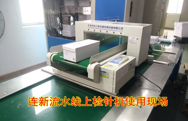 厚街某鞋厂使用连新牌流水线上置输送式检针机使用现场,该检针机可直接放在流水线上使用,不需要破坏现有的生产线,不而外占用地点来拜访该检针机,流水线检针机的横跨度可调节,检针精度高。欢迎上门考察!