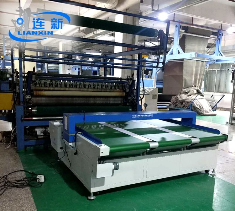 宝大鞋业因业务发展需要,经多方考察选购连之新定制的2米宽幅输送式检针机,图为使用现场:
