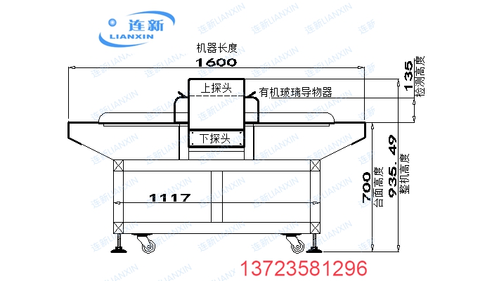 说明:金属漏装检测机灵敏度的高低由检测高度(即通道或龙门)和速度快慢来决定最高检测精度。龙门越高,灵敏度就相应降低。以上对应的高度和检测标准是在空机状态下的检测结果;检测通道高度和宽度,都可以按要求定做!