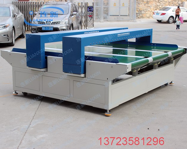 适用场所: 用于检测布料、无纺布、刺绣品、床单、被子、毛巾、浴巾、地毯、工艺品、纸板、木板等所有宽幅纺织品和片材中混入的断针、铁屑、铁丝、刀片、金属工具等金属异物。
