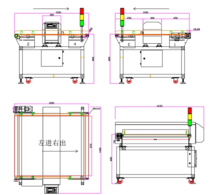 5.整机机架采用优质不锈钢材激光切割焊接技术及拉丝工艺制作,食品级白色PVC或PU皮带,日本品牌轴承及6厘厚304无缝钢管滚筒,采用日本三菱同步带及德资JSCC品牌电机。