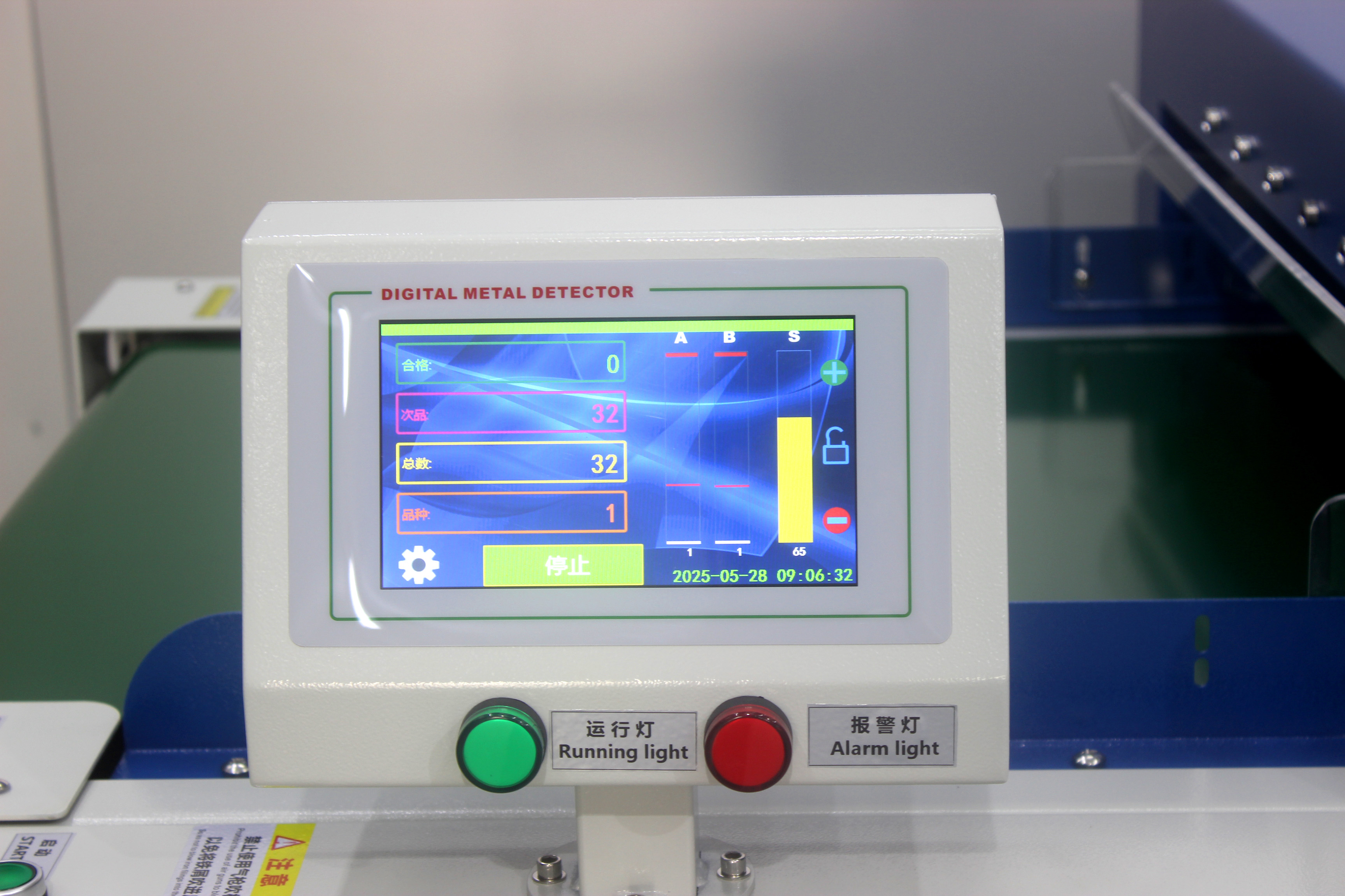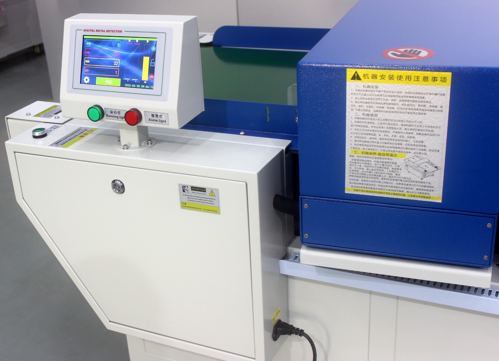 ■ 超强抗干扰电脑芯片集成电路,上下探头双排路64组感应器,优于传统双探头检针机;