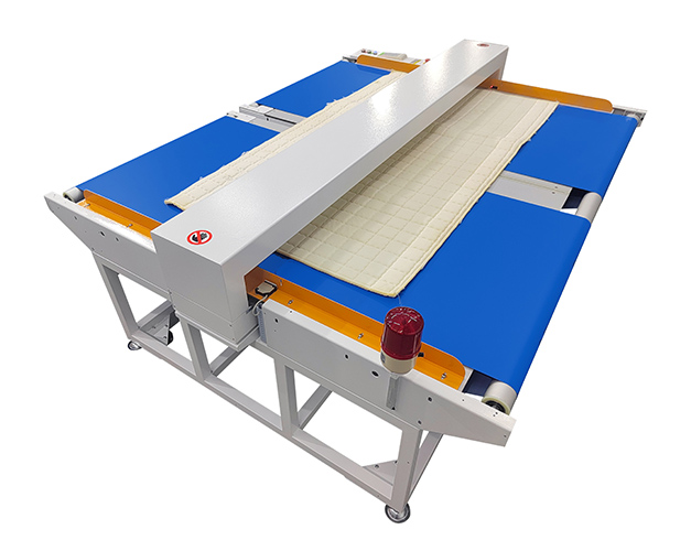 适用场所: 用于检测布料、无纺布、刺绣品、床单、被子、毛巾、浴巾、地毯、工艺品、纸板、木板等所有宽幅纺织品和片材中混入的断针、铁屑、铁丝、刀片、金属工具等金属异物。